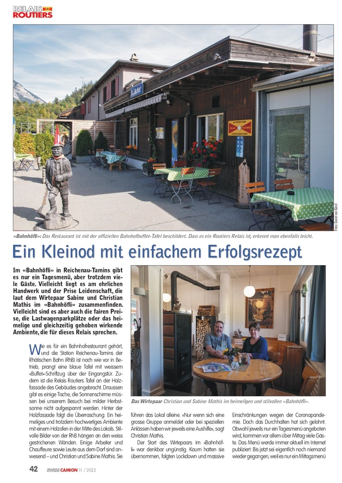 Wir freuen uns sehr über die Mitgliedschaft bei Relais Routiers, und bedanken uns bei all den netten Menschen, die uns die Aufnahme in diesen Restaurantführer ermöglicht haben. Gerne empfehlen wir unser heimeliges Restaurant allen Berufschauffeuren die Wert auf ein preiswertes Mittagessen in einem Wohlfühlambiente legen.